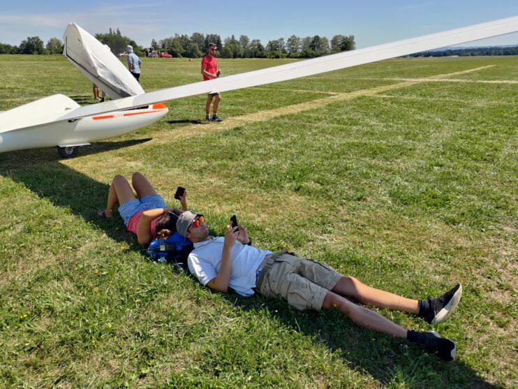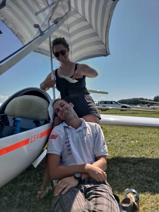 Zurück zur Übersicht Allgemein, Deutsch, JWGC 2022, pll_62de545161086, SGT, SJGT, Sport Die Junioren Weltmeisterschaften finden in Tabor (Tschechien) vom 31.07. - 12.08. statt. Verfolge die Resultate und Erlebnisse unseres Schweizer Teams hier im Blog. Danke! Die Juniorinnen und Junioren danken dem 100er-Club ganz herzlich für die grosszügige Unterstützung! Du möchtest das Juniorenteam auch jährlich mit einer Hunderternote unterstützen? Dann schau doch einmal beim 100er-Club vorbei! Hier geht’s zur offiziellen Webseite der JWGC 2022 und zu den Aufgaben und Resultaten. 7. August: Tag 7 Einen schönen guten Morgen aus Tabor. Gestern im Verlauf des Nachmittags hat sich die Bewölkung immer weiter reduziert und entsprechend ist der Flugplatz schon deutlich trockener. Und wir schauen aktuell in einen blauen Himmel, der gewissen Gerüchten zufolge auch mehrheitlich blau bleiben dürfte. Ob sich diese auch wirklich bestätigen, wird sich um 10Uhr am Briefing zeigen. Wie Ihr das so langsam kennt, gibts das Briefing auch in der Live Übertragung. Die Startbereitschaft liegt aktuell bei 11Uhr. Daher gebe ich euch auch gleich schon den Link fürs Tracking mit. Denn wenn es wirklich schon um 11Uhr los geht, dürfte ich als Spielgruppenleiter meiner Piloten, erst mal ziemlich gut beschäftigt sein bis die alle oben in der Luft sind. Ich melde mich aber selbstverständlich spätestens wieder, sobald ich es von der Startaufstellung ins Teamzelt zurück geschafft habe. 10:35 Briefing ist durch Ich hoffe Ihr seid schon bereit. Um 11Uhr geht der erste Start raus. Aufgaben gibts sowohl eine A als auch B, wobei ich aktuell von der A-Aufgabe ausgehen würde, welche Ihr hier für die Clubklasse und Standardklasse findet. Achja, das mit blau hat sich eher als Gerücht erwiesen. Wobei die Cumuli schon sehr flach bleiben werden. Aber sieht doch schon mal gut aus. 12:25 Und oben sind sie Alle Flugzeuge in der Luft, alle Schleppflugzeuge zurück am Boden, so langsam wird es hier ruhiger. Die Startlinien für die Clubklasse ist seit 12:08 offen und die der Standardklasse öffnet um 12:37 Das Tracking läuft, warten wir also mal auf die Abflüge. In der Clubklasse ist bereits etwas Bewegung drin. 13:26 Endlich bewegt es sich Zumindest in der Clubklasse gehts jetzt ans Abfliegen. Die Standardklasse ist da weiterhin sehr entspannt und wartet so ziemlich geschlossen noch etwas weiter. 13:42 Jetzt auch bei der Standardklasse Genau, nun hat die Standardklasse wohl endlich auch mal genug Kreise vor der Startlinie gezogen und bewegt sich eventuell nun doch auch mal noch geradeaus. 14:00 Etwas zäh Bei unserer Clubklasse sieht das etwas zäh aus. Aber bei den anderen Clubklasse Flugzeugen sieht es ebenfalls nicht sehr viel besser aus. Die Standardklasse schaukelt sich gerade gemütlich in einer Reisegruppe mit Deutschen und Holländern vorwärts. 14:20 Gridbilder Fast hätten wir sie vergessen, aber hier kommen sie jetzt trotzdem noch, unsere Gridbilder. Jenny und David machen einen entspannten Eindruck. Pascal, vermisst seit dem Prag Trip irgendwie seine Helferin Sarah, bleibt aber trotzdem entspannt. Den beiden Etterlis scheint die Cmelak irgendwie den Kopf verdreht zu haben, mal schauen ob Sie eine mit nach Hause nehmen? Solange die Etterlis überlegen, hängen wir Jonas schon mal an die besagte Cmelak. 14:45 Erste Aussenlandungen In der Clubklasse gibts erste Aussenlandungen. Unsere haben das bisher dankenswerter Weise bleiben lassen. Bei unserer Clubklasse ist es nun etwas flüssiger geworden. Allerdings haben Sie auch noch so 160km vor sich. Bis jetzt sind Sie damit aber im Zeitplan. Jonas und Claudio aus Standardklasse sind weiterhin in der Reisegruppe. Dort sind es noch so 200km. Nico hat sich ein paar Kilometer nach vorne gearbeitet und liegt vor Ihnen. 15:10 Wenden Unsere Standardklasse ist gerade dabei, in rund 120km Entfernung von uns zu Wenden. Dank Joel der sich in der richtigen Ausrichtung unter unserer Hochantenne schlafen gelegt hat, können wir den Jungs auch in dieser Distanz noch zuhören. Auch die Clubklasse näher sich so langsam Ihrer nächsten Wende. 15:25 Wenden bei den Clubbies Nun hat auch unsere Clubklasse gewendet. Zeitgleich hören wir auch schon die ersten Flugzeuge auf der Platzfrequenz, da einzelne Piloten wirklich viel früher abgeflogen sind. Der Tag bleibt aber weiterhin sehr selektiv. Es gibt nämlich weitere Aussenlandungen und z.B. der bisherige Gesamtführende in der Standardklasse Maurits Hebels, musste ebenfalls den FES Antrieb seines Flugzeuges nutzen. Ich hoffe also, Ihr haltet unseren Piloten weiterhin die Daumen gedrückt. 15:35 Distanz Update Jetzt sind Sie alle auf dem Weg zurück. Es verbleiben 120km für die Standardklasse und 100km bei der Clubklasse. In der Clubklasse liegt Pascal leicht vor David. In der Standardklasse liegt Nico vorne, Jonas und Claudio sind aber nicht weit dahinter. 16:00 Klassentreffen Unsere Piloten haben gerade ein kleines Klassentreffen. Nico ist jetzt bei David in den Aufwind eingeflogen. Die Reihenfolge bleibt weiterhin die gleiche. Die Distanzen werden aber weniger. 65km für die Clubklasse, 90km in der Standardklasse. 16:20 Endanflug? Unsere Clubklasse spricht jetzt zum ersten mal vom Endanflug. Bei Pascal müsste der schon passen, David muss wohl noch etwas arbeiten. Die Standardklasse braucht ebenfalls noch ein paar Meter. 16:30 Einen haben wir zurück Pascal ist gerade gelandet, David meldet noch 10km bis zum Flugplatz. Irgendwo dahinter kommen dann noch ein Jonas, ein Nico und ein Claudio. 16:45 Ein paar haben wir zurück Denn David, Nico und Jonas sind ebenfalls hier. Und Claudio ist ebenfalls im Endanflug. Damit wechsle ich erst mal wieder rüber zu den Piloten und höre mir mal an, was Sie so spannendes zu erzählen haben. Für euch habe ich hier die Ranglisten der Clubklasse und der Standardklasse die laufend aktualisiert werden. Berichterstattung: Pascal Brunner 6. August: Tag 6 Guten Morgen aus Tabor, da sind wir wieder zurü